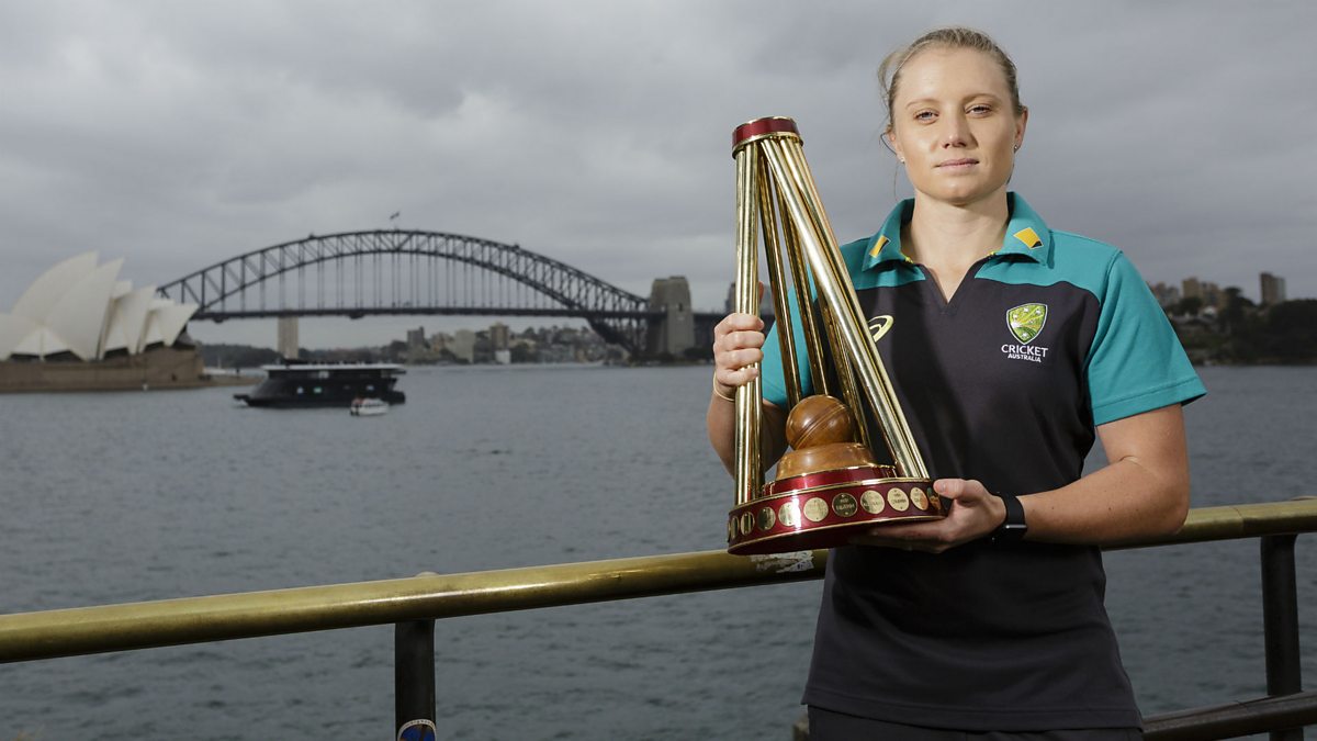 (Photo: Alyssa Healy holding the Women's Ashes trophy in Sydney, Credit: Getty Images)