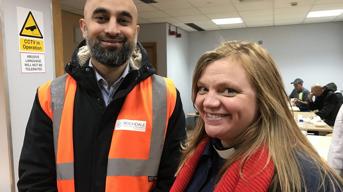 Rev Kate Bottley meets Mohammed, a volunteer at a soup kitchen in Rochdale which feeds the homeless