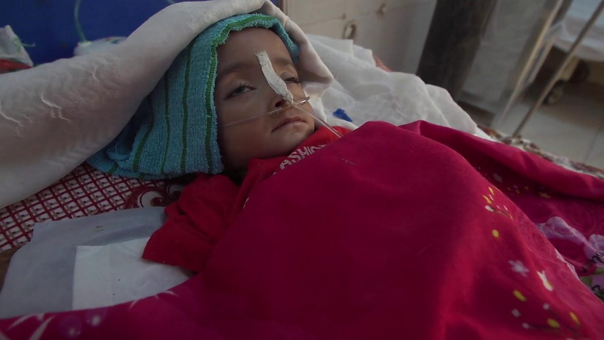 Fifty thousand children under the age of five in Yemen are expected to die this year from hunger or disease. Clive Myrie and cameraman Nick Millard have been to the front-line city of Taiz, where there's no let up in the fighting.