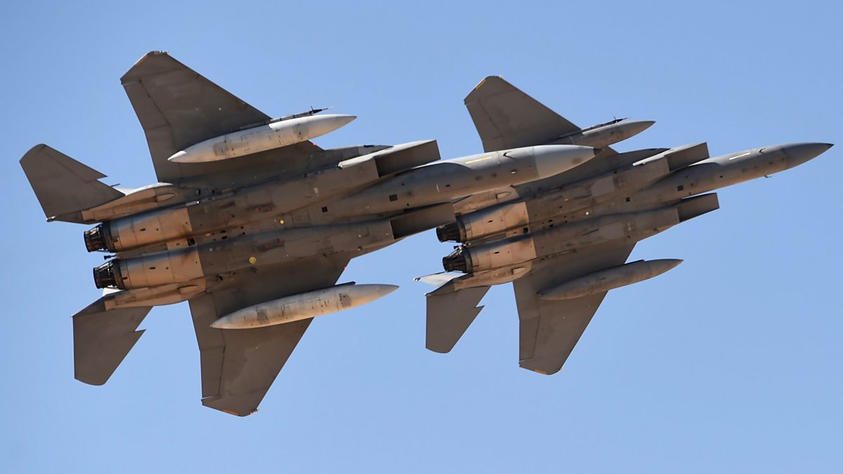 (image: Saudi Air Force advanced F-15SA fighter jets at King Salman airbase in Riyadh, January 2017. Credit: Fayez Nureldine/Getty Images)