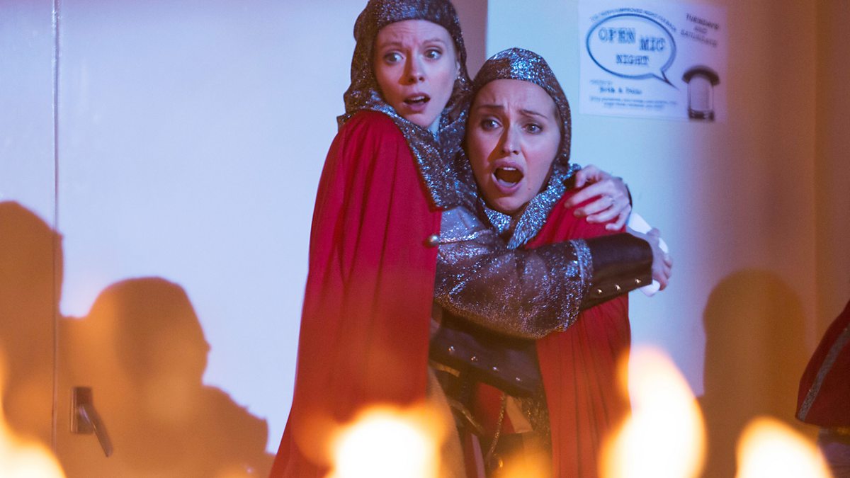Unbeknownst to them, some leaked information means their plan is riskier than they first thought. After eavesdropping on a secret plot by Baz and his friends, Leanne starts to get cold feet. Leanne and Rhona risk it all in their outlandish Tudor-themed stunt.