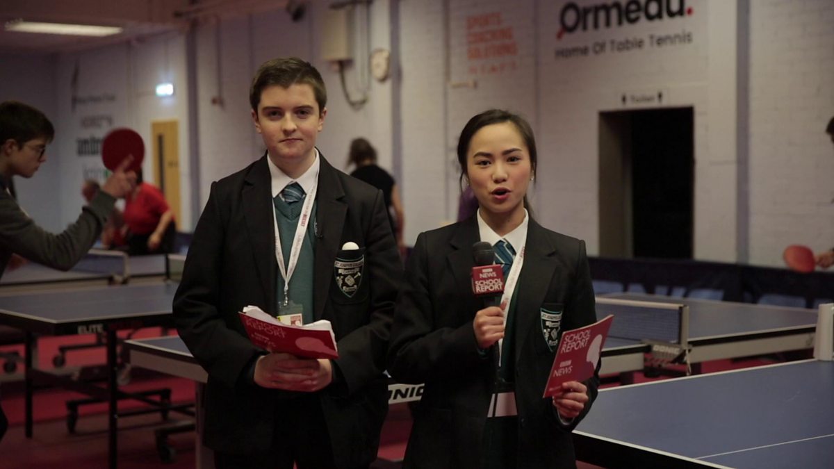 Students from St Joseph's College, Belfast meet table-tennis coach Gervis Knox.