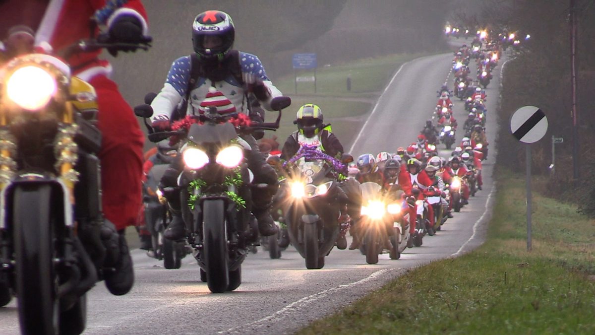 Motorcyclists from all over the country have delivered donated gifts to a Cambridge hospital dressed as Santa.