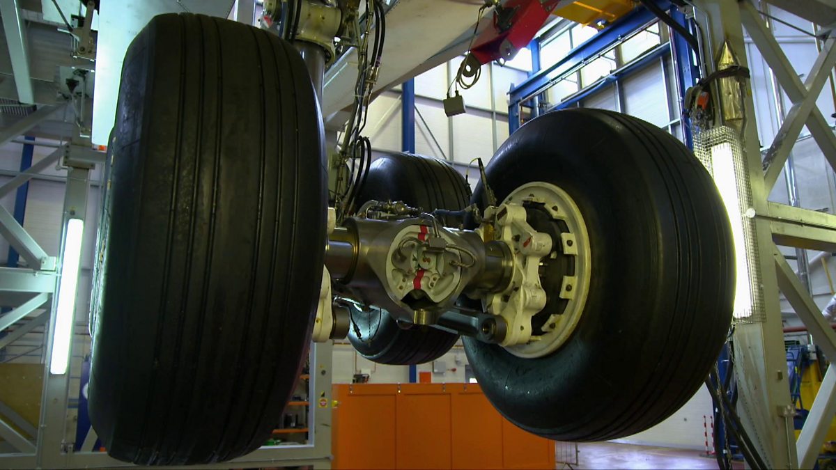 Michael tests the wheels of an Airbus 380 at its Filton production site.