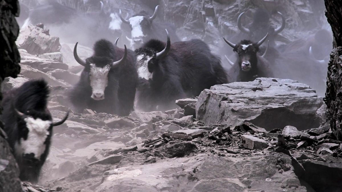 In Nepal herders bring their yaks down one of the steepest mountain passes in the region. The ground is treacherous and it is easy for the animals to become injured.