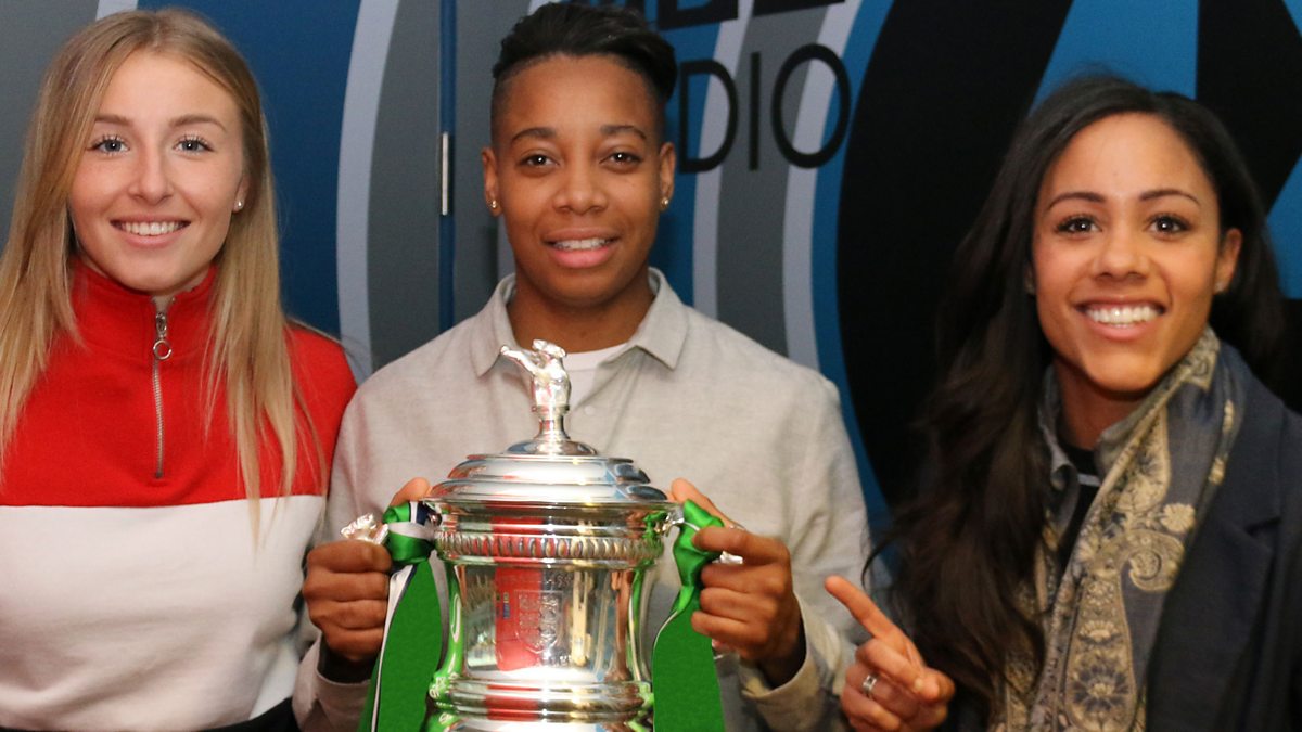 Dotty is joined by Arsenal W.F.C.'s Leah Williamson and Olympic footballer Alex Scott to draw the Quarter Final fixtures for the Women's FA Cup.