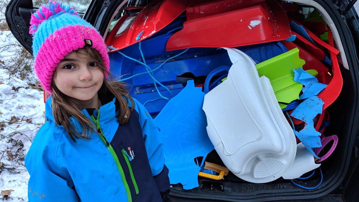 A popular sledging site has been given a clean-up thanks to an eight-year-old girl.