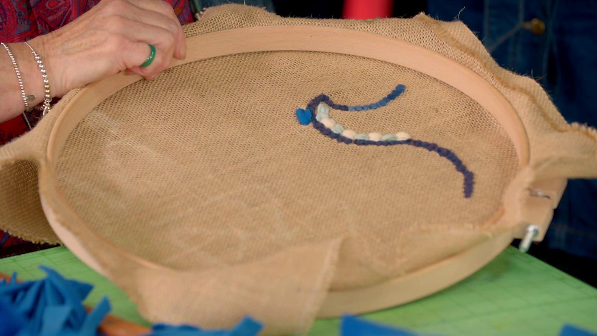 Prodding uses short strips of fabric which can be prodded in from behind or pulled through the front using a spring hook.