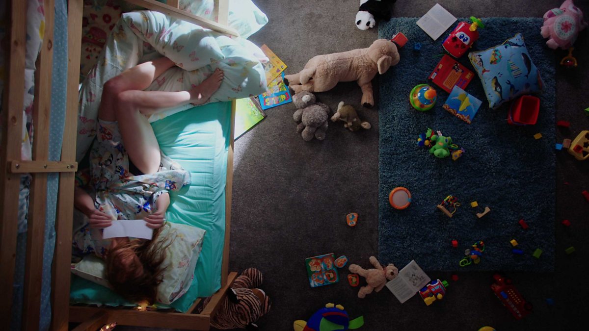 Faith (Eve Myles) is beyond desolate without her children. Arthur (Alex Harries) consoles her.