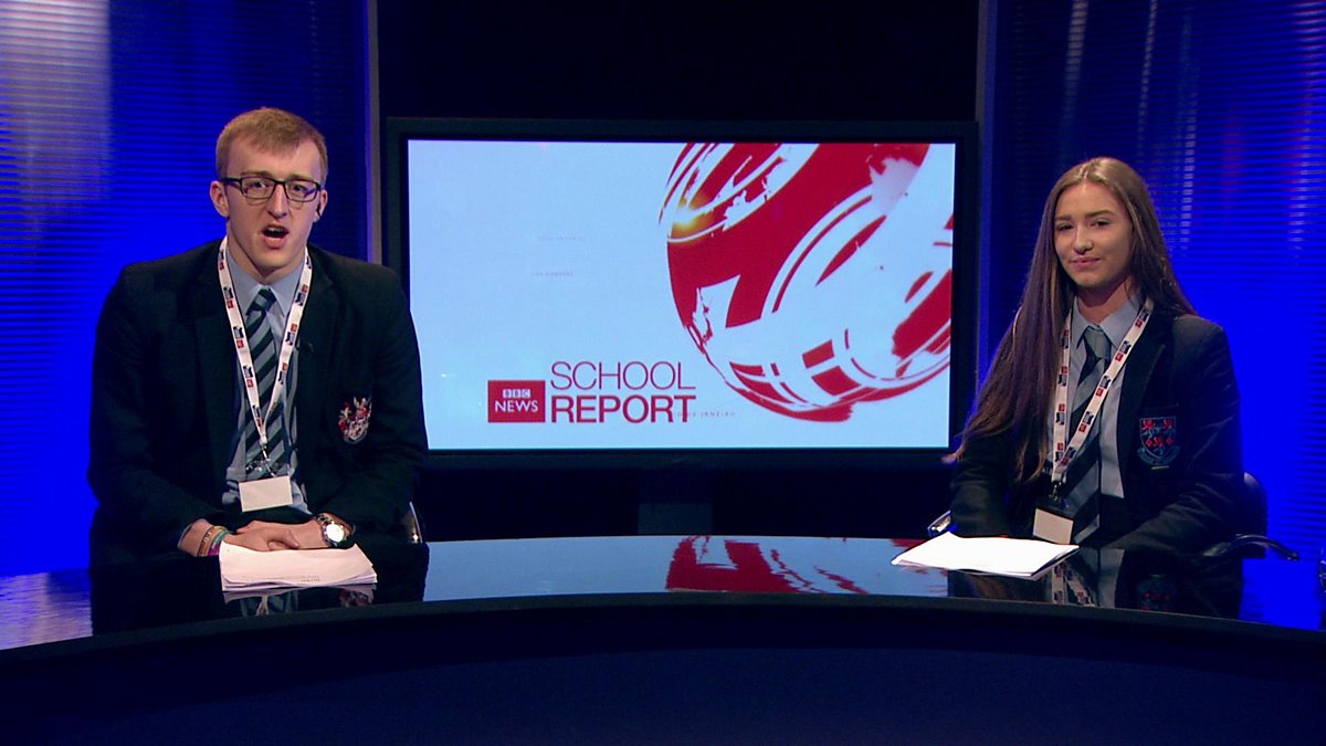 Students from Portadown College present the 13.00 bulletin School Report bulletin.