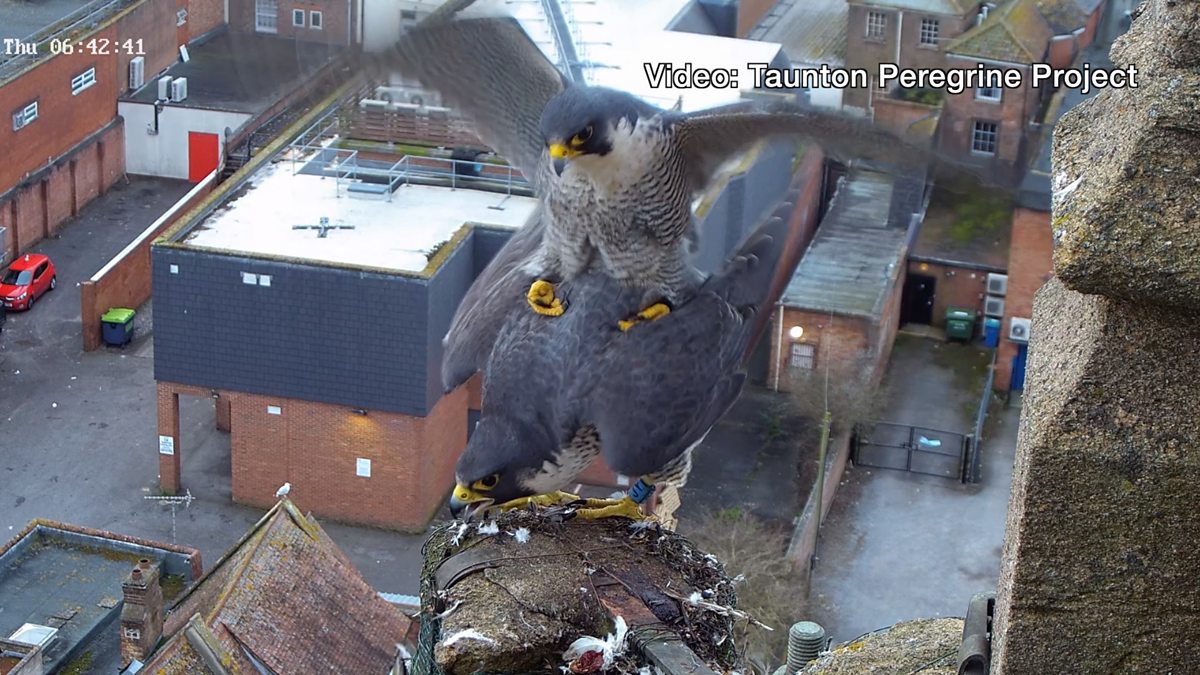 Taunton peregrine falcons filmed mating