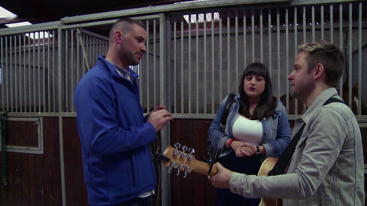 Country Music DJ David pretends he is interviewing Derek Ryan, but proposes to Sharon instead after Derek sings them their favourite country song.