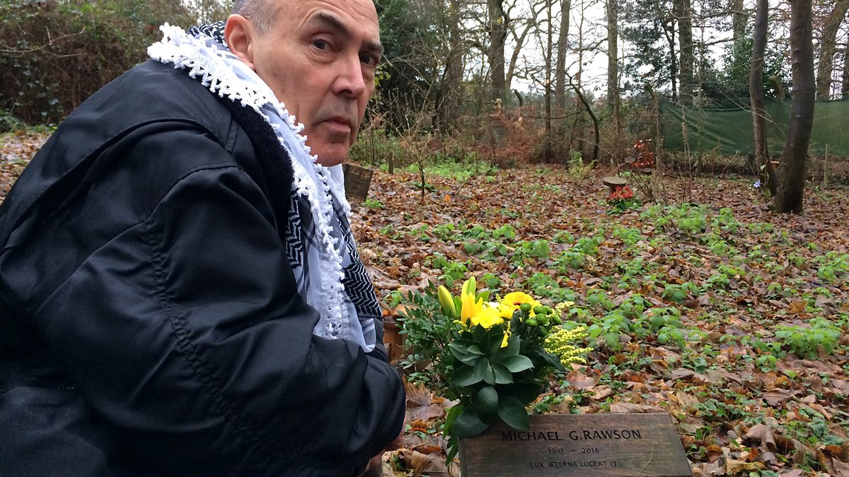 (Photo: Jonathan Izard at the woodland plot where Michael Rawson's ashes are buried.)