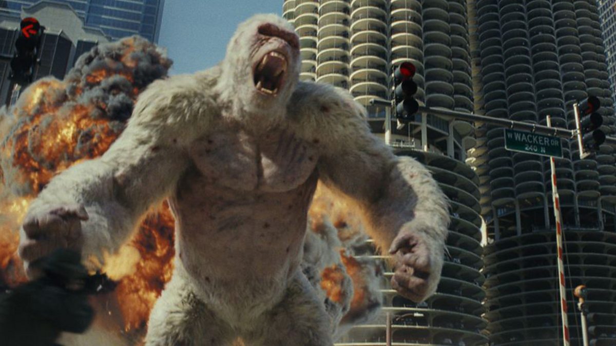 Robbie Collin reviews Rampage. Three creatures are infected with a biological weapon that turns them into gigantic monsters.