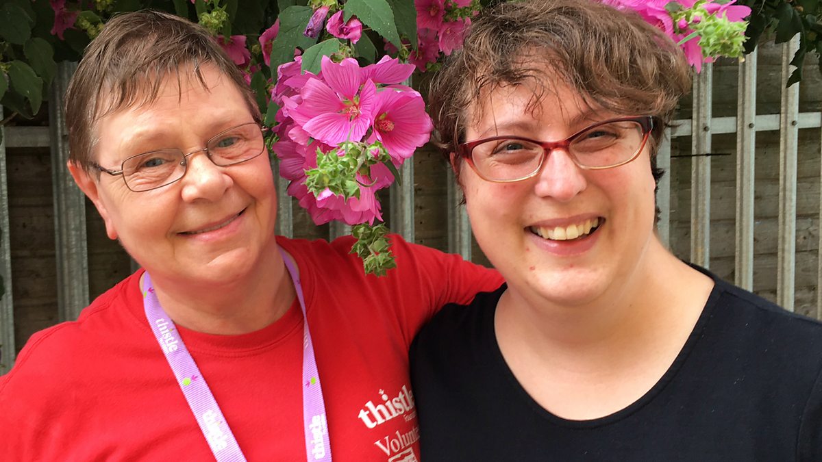 Margaret and Liz have been friends for about 5-years. They met through Tai Chi classes at the Thistle Centre in Edinburgh. The Thistle is a charity that offers support and wellbeing classes. Margaret started going there 13-years ago. She'd spent years prior with chronic back pain before finally getting a diagnosis of scoliosis. The pain had made her very isolated because physically she could hardly move. Margaret knew she didn't want to continue the way she was going. That's when she started regularly attending the Thistle Centre. Liz has now completed her degree in Public Sociology. She was diagnosed with Generalised Anxiety Disorder in 2011. She'd always struggled with anxiety, but at that point, she became completely burned out. She started attending the Thistle 5-years ago when her condition got really out of control. Starting Tai Chi, meeting Margaret and starting to learn techniques to manage her condition made a massive impact. She says she wouldn't have gone to university if it hadn't been for attending the Thistle. She now wants to take her experience and pass it on.