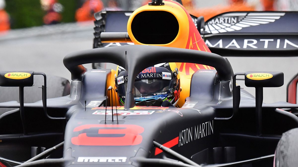 Red Bull's Daniel Ricciardo encounters engine issues mid-race.