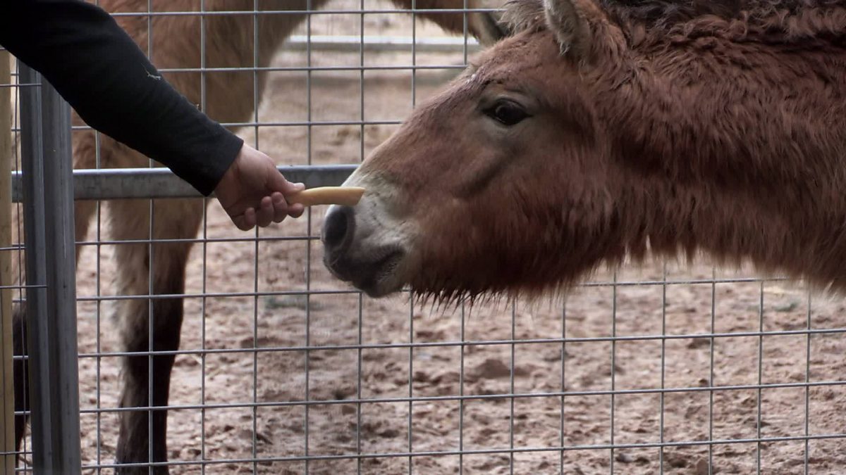 Training wild Przewalski horses at Highland Wildlife Park.