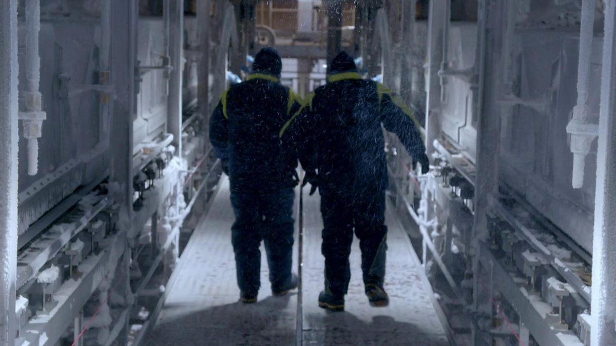 Gregg Wallace heads into a freezer which, at minus 46 degrees C, is even colder than the North Pole. This is where liquid coffee is frozen.