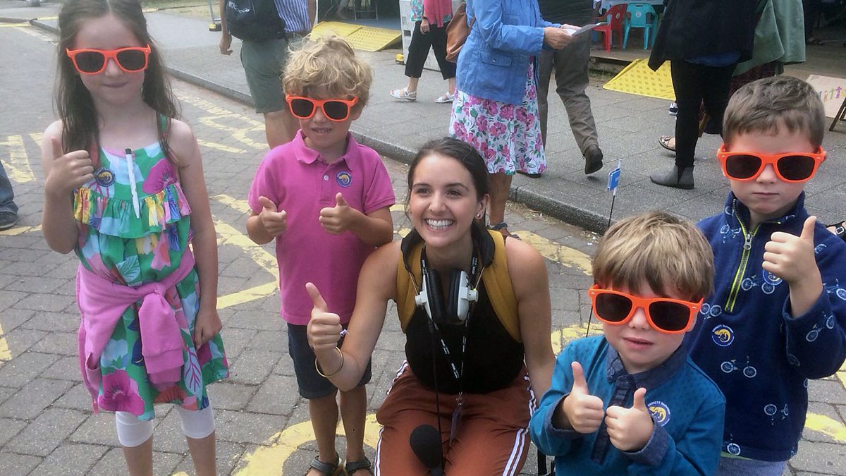 Anni Llŷn sy'n sgwrsio gyda griw o blant ar faes y 'Steddfod.