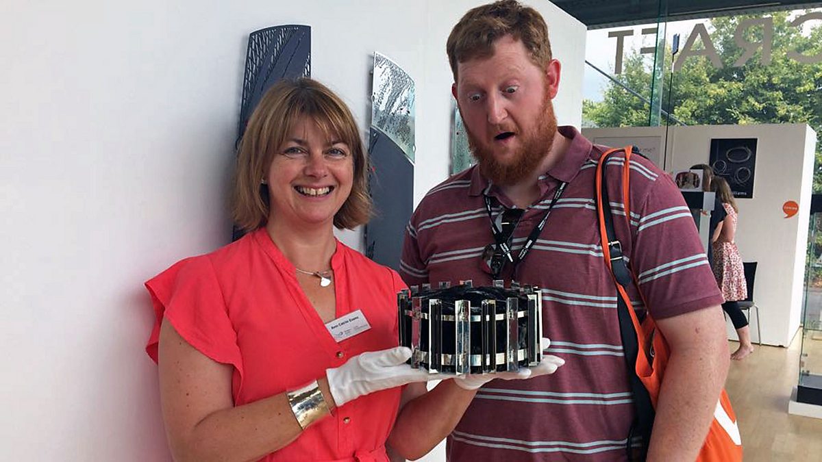 Siôn Tomos Owen sydd yn ymweld ag arddangosfa coronau'r Eisteddfod.