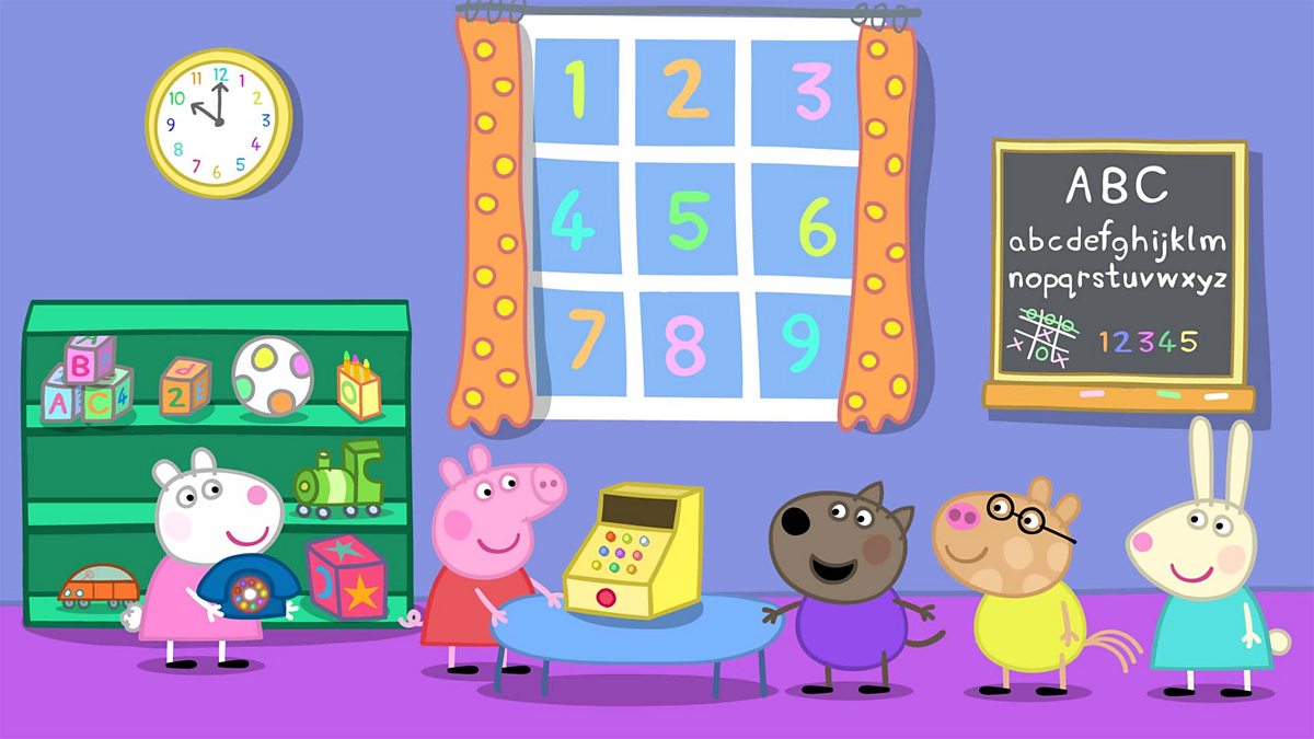 Peppa and Suzy learn that grown-ups must work all day, and the children play at working in a shop at playgroup and find it very hard work.