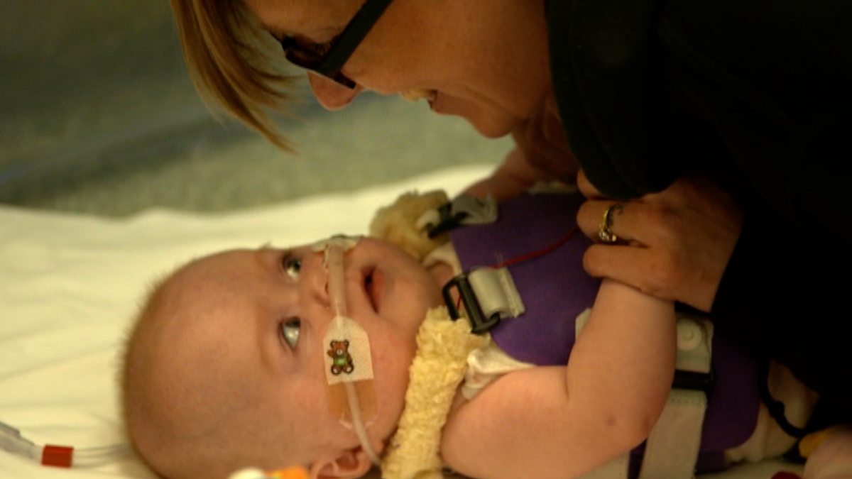 Vanellope Hope Wilkins, who was born in November 2017, had three operations to place her heart back in her chest in Leicester before being moved to hospital in Nottingham, closer to her home.