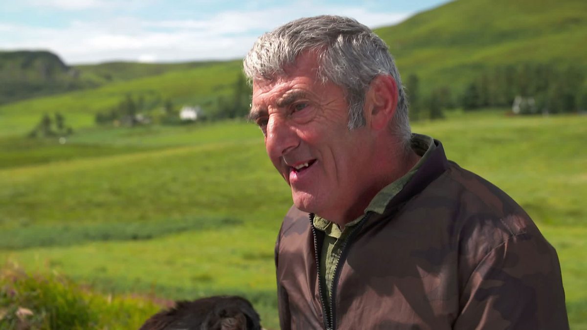 Tha Dòmhnall a' trusadh chaorach ann an ceann a tuath an eilein