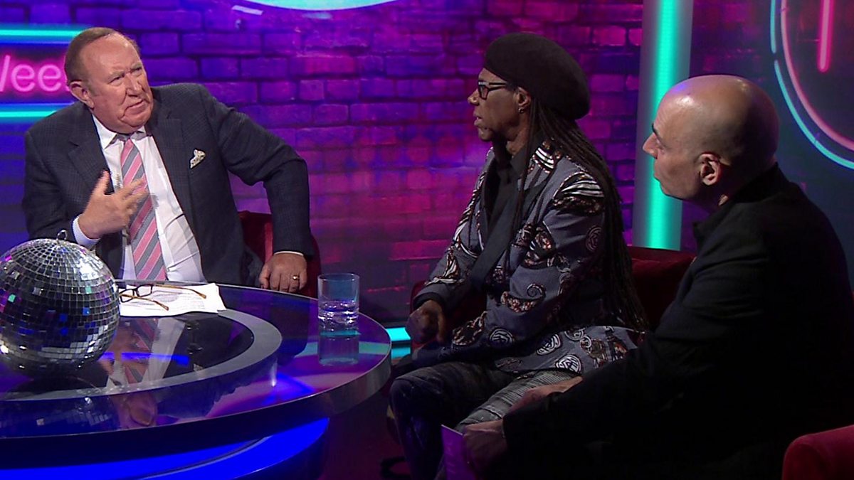 The musician, and his producer Merck Mercuriadis, were asked about rap music that has been criticised for "dwelling on violence, and gangs, drugs and misogyny" by This Week presenter Andrew Neil.