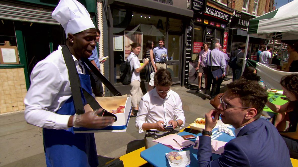 Kayode Damali impresses Claude Littner with his silver-tongued, doughnut selling skills on the streets of London.