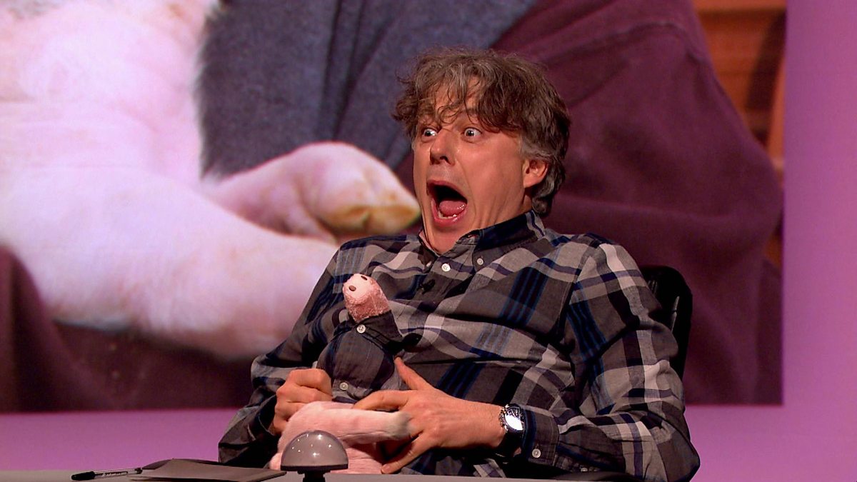 Sandi Toksvig, regular Alan Davies, and panelists Ed Balls, Sara Pascoe and Johnny Vegas chat about Parts.