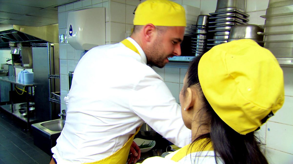 It’s week five, and Rick and Jasmine need to work together to make party canapes. Meat lollipop anyone?