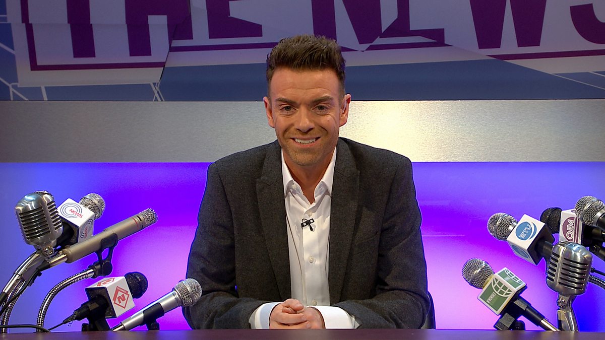 Topical comedy panel show hosted by Des Clarke.