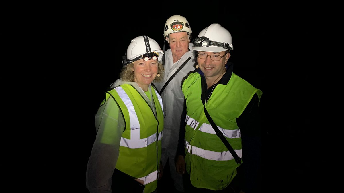 Pennie Latin and Allan Kilpatrick explore inside the Inchindown fuel tanks