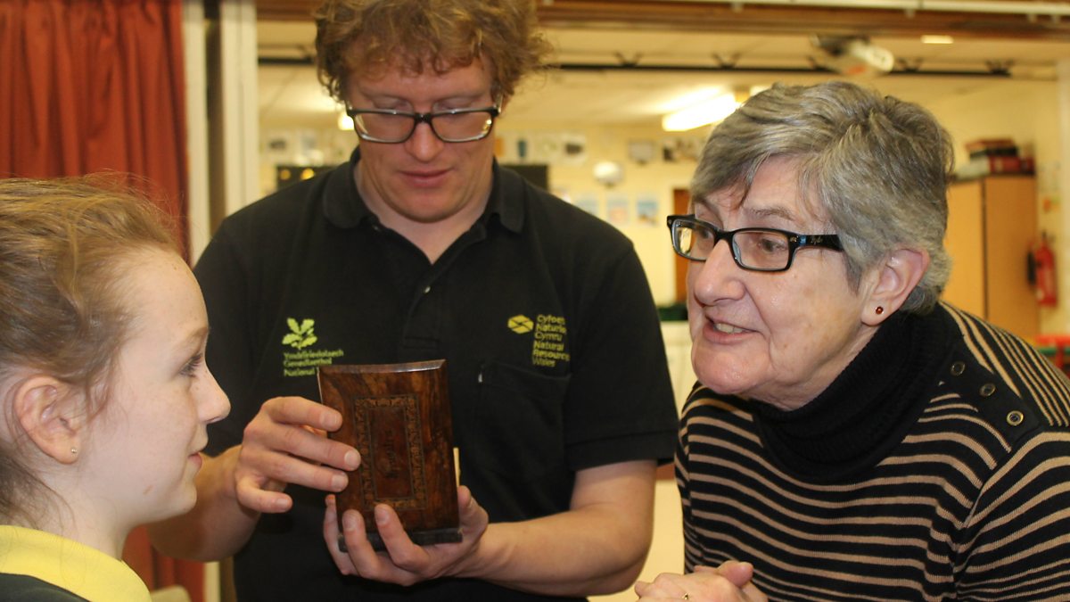 Iolo Williams, Bethan Wyn Jones a Guto Roberts sy'n clywed yr hanes.