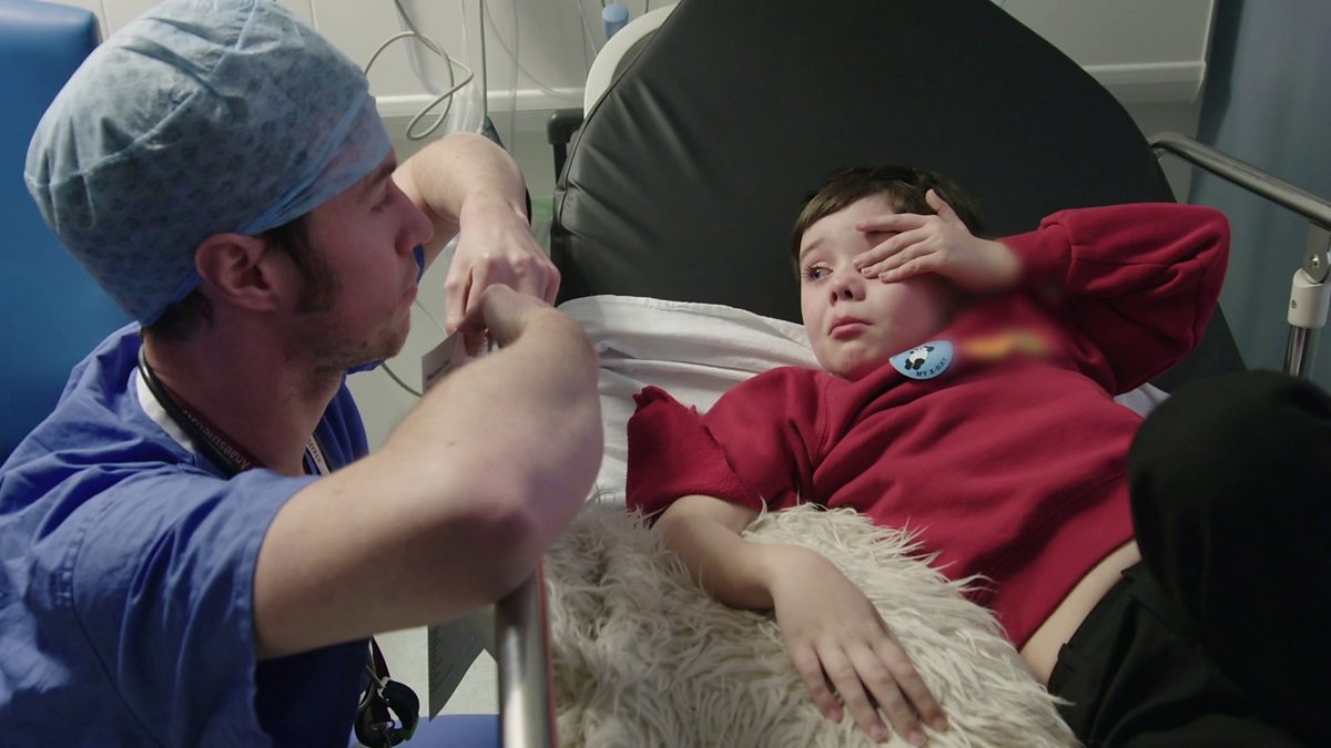 Jack, 9, has broken his arm and anxiously waits for an operation, but more importantly, his mother to arrive to comfort him.