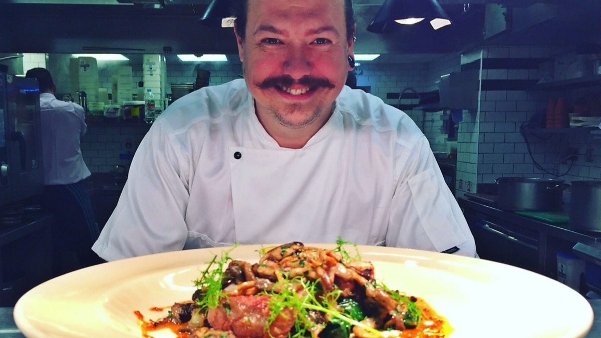 Chef, James Golding, creates a dish using freshly-harvested kale from the garden.