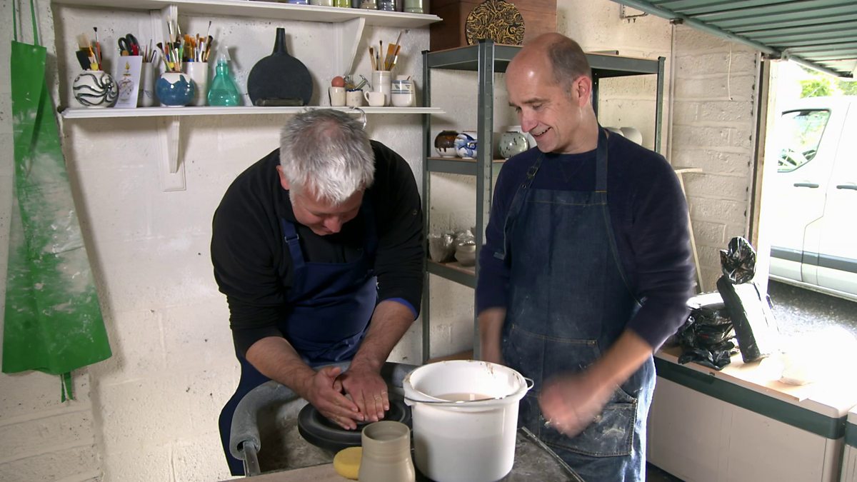 Potter Richard Prentice creates beautiful ceramic pieces to reflect the coast. His 'apprentice', weatherman Derek Brockway's efforts are somewhat less artistic.