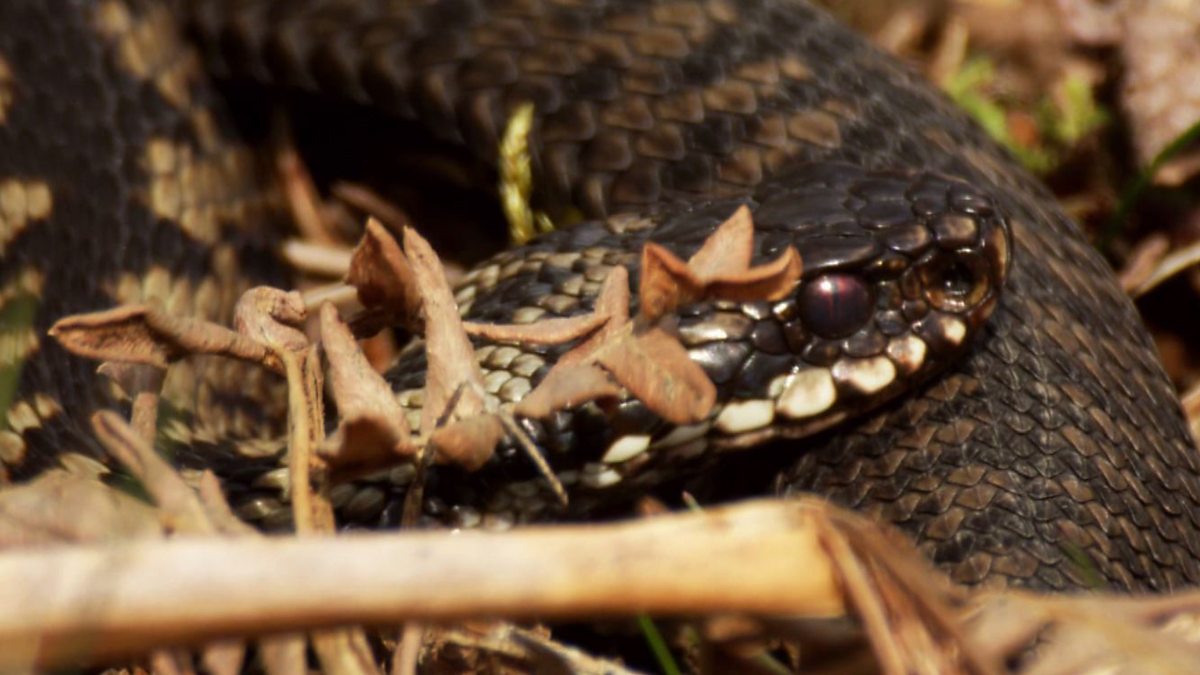 Newly emerged from hibernation, sluggish male adders must be on guard against predators.