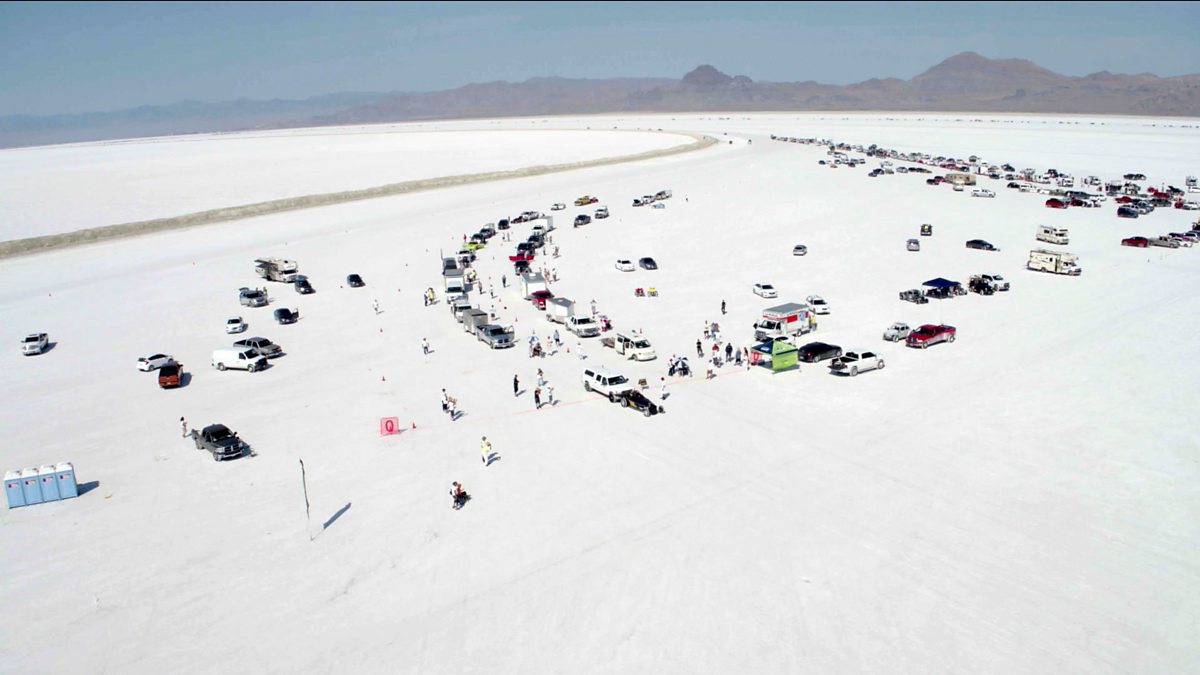 From space, strange shapes can be seen etched into Lake Bonneville, Utah. They're tyre tracks left behind by hundreds of petrol heads pushing their cars to the limit.