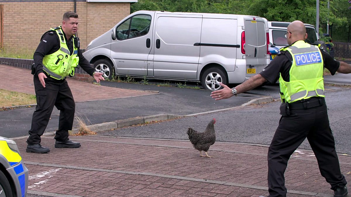 Officers Singh and McKirdy prove that jaywalking poultry are no match for the traffic police