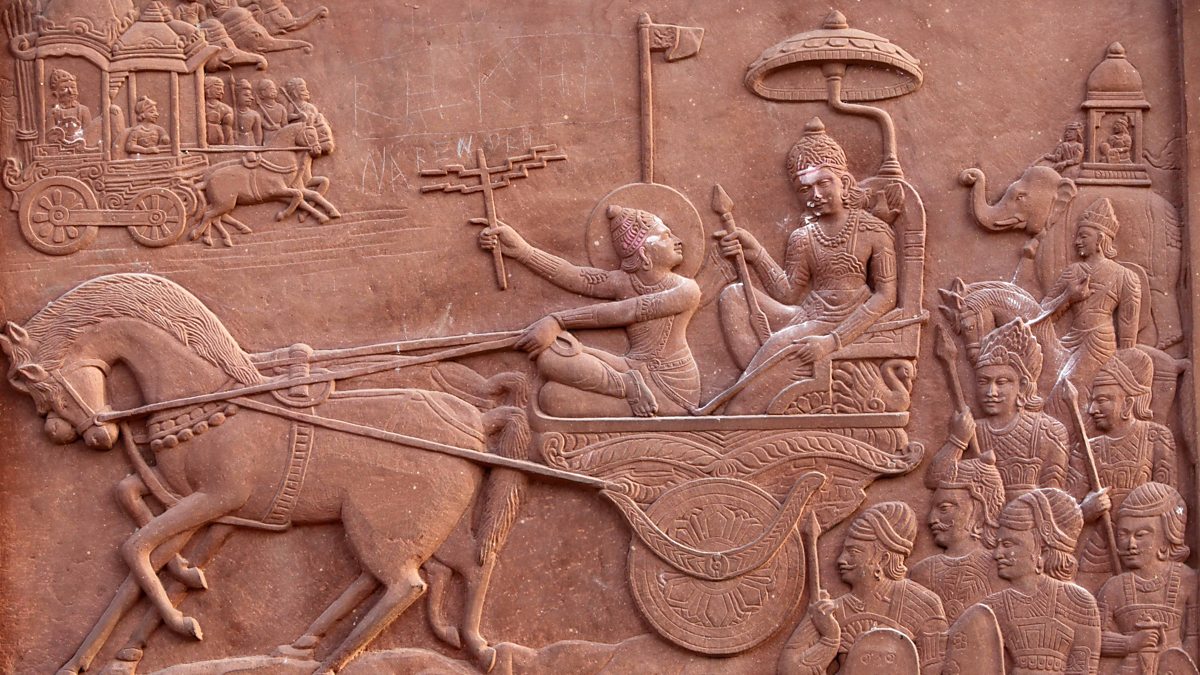 Photo: Bhagavad Gita engraved on a Hindu temple. (Godong/Getty Images)