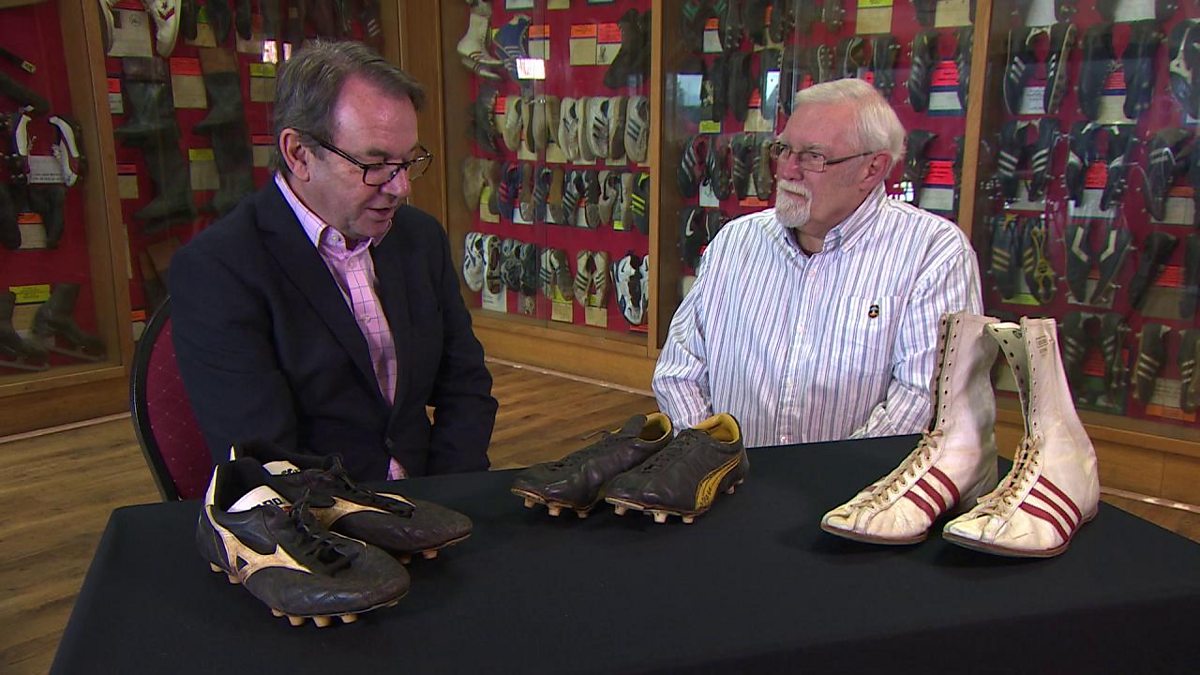 He visits a unique footwear collection which finds its unlikely home at a Welsh rugby club