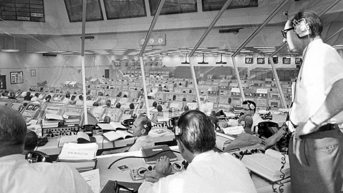 The flight controllers tracked and monitored the spacecraft through every second of the moon landing mission. They passed information to the crew and were ready to fix problems as they arose. Rather than direct problems at a senior level, they relied heavily on the expertise of the back-room advisers who had specific knowledge of the issues.