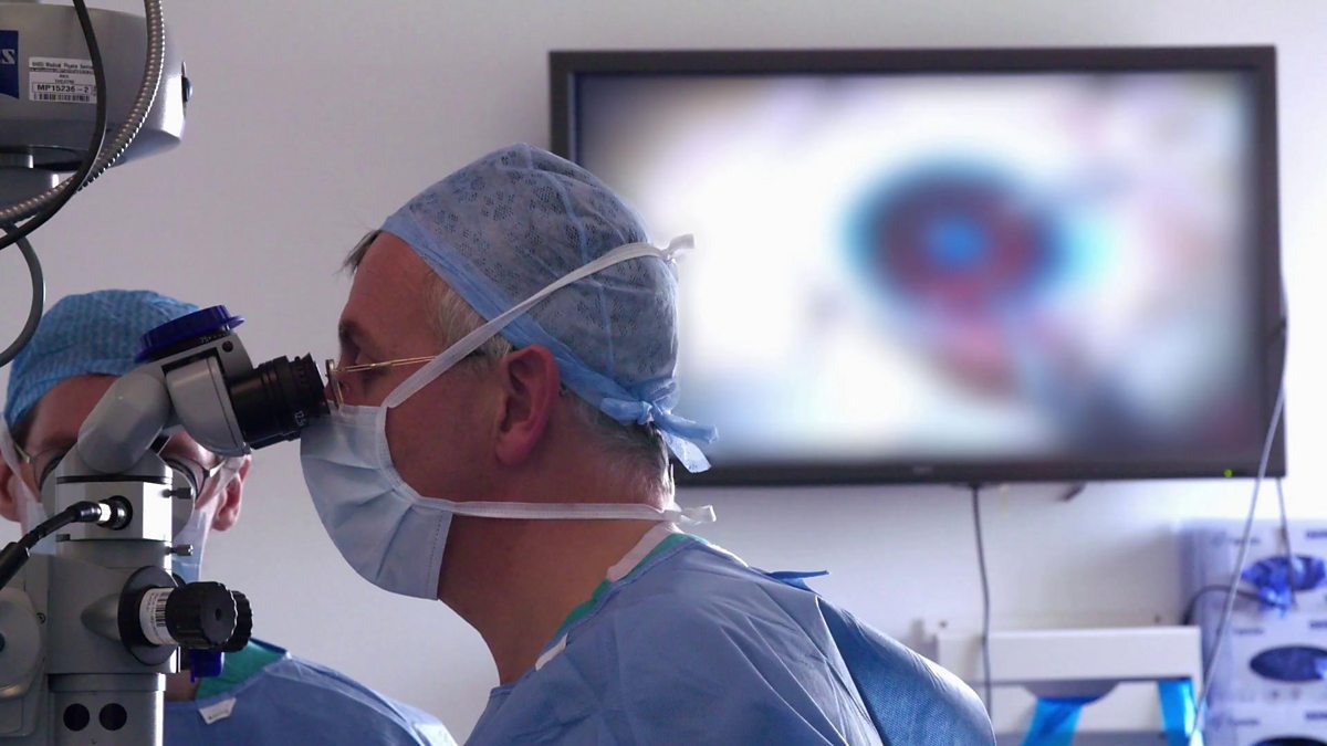 Ophthalmologist Mr Scott needs all his surgical skill as he battles to remove a stubborn cataract from 3-year-old Oscar’s eye.