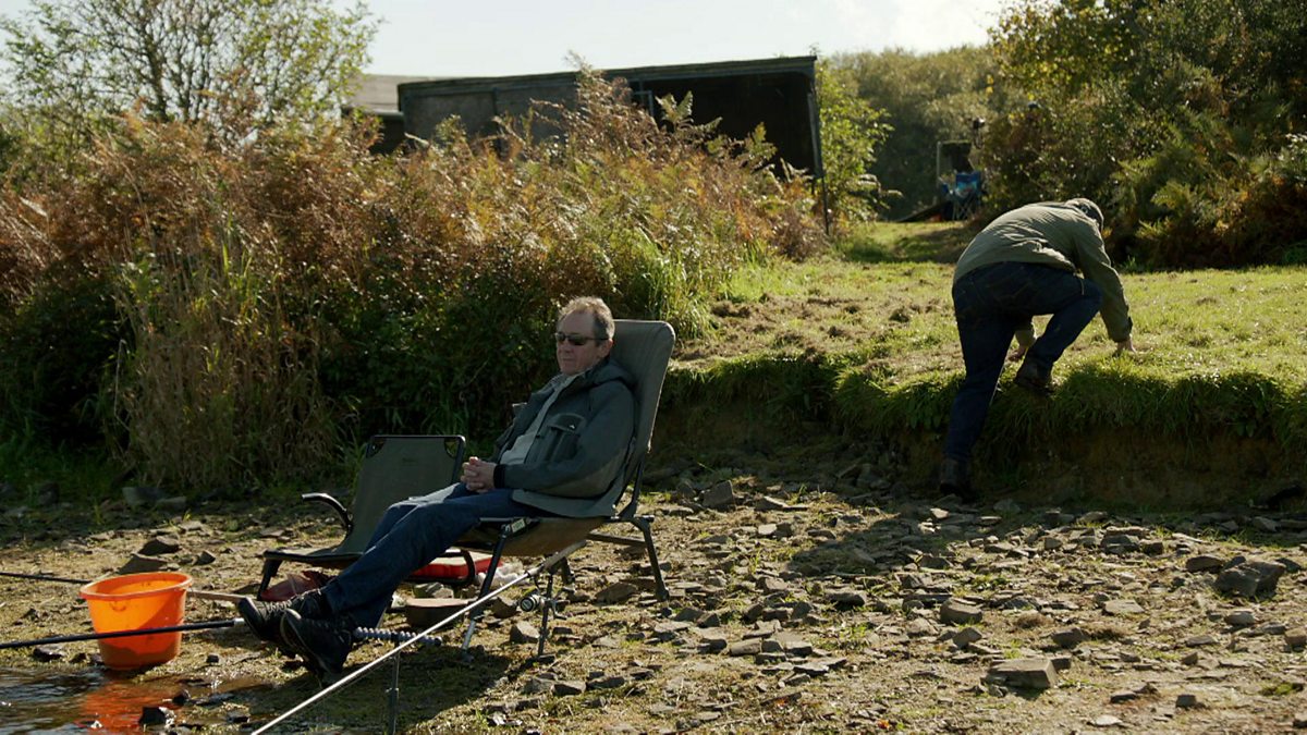 Bob is concerned that Paul has better chance of catching fish than him. Paul pushed Bob up a bankside.