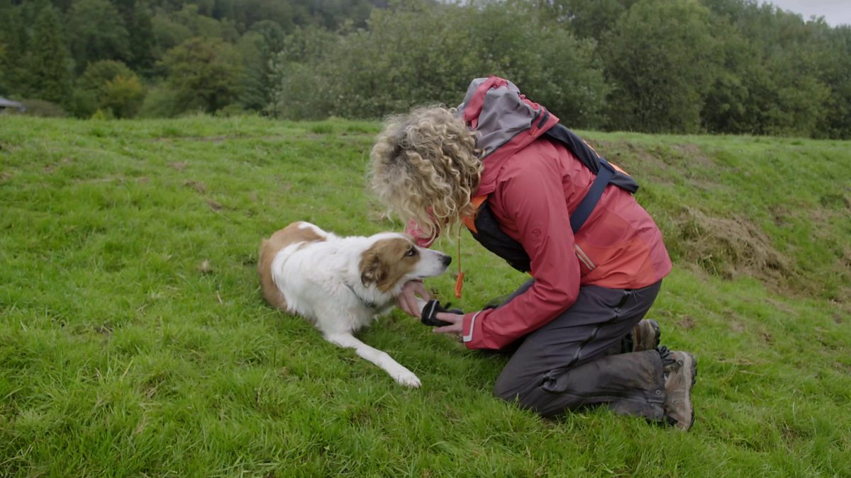 Kate Humble tries packrafting with her sheepdog Teg; though can’t control her laughter when Teg has to wear shoes to protect the inflatable raft from claws.