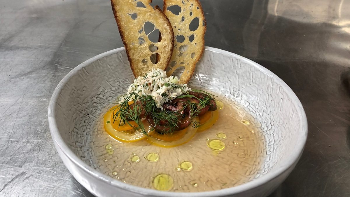 In the kitchen with Matt Tomkinson, preparing a crab & tomato starter