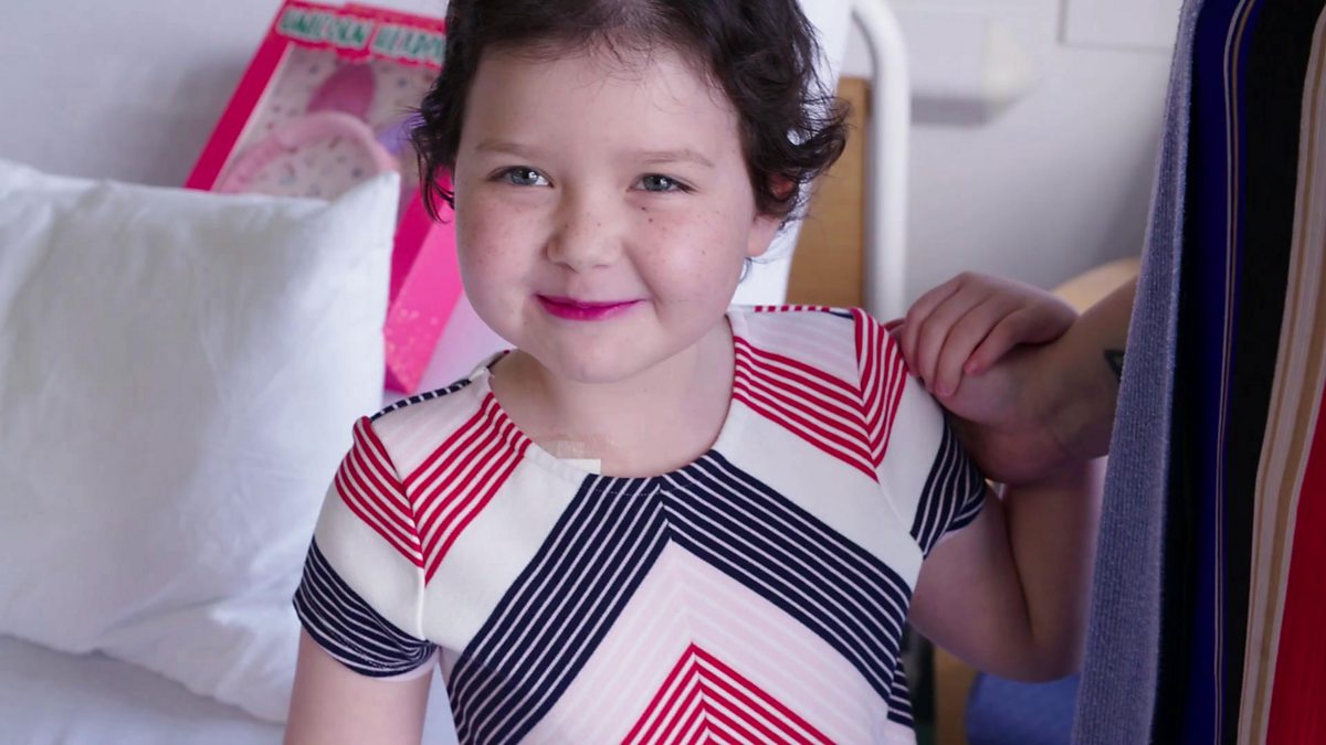Olivia comes to the end of treatment for Acute Lymphoblastic Leukaemia. She has her Hickman line removed, then rings the hospital’s bell to celebrate the end of her chemotherapy.