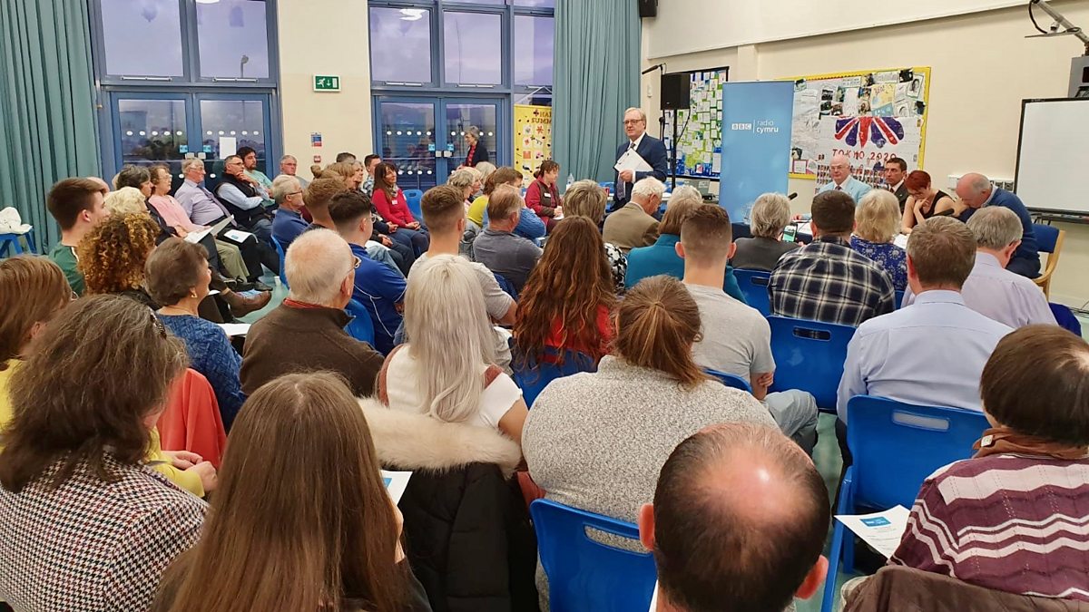 Barn y panel a'r gynulleidfa yn Abergwaun.