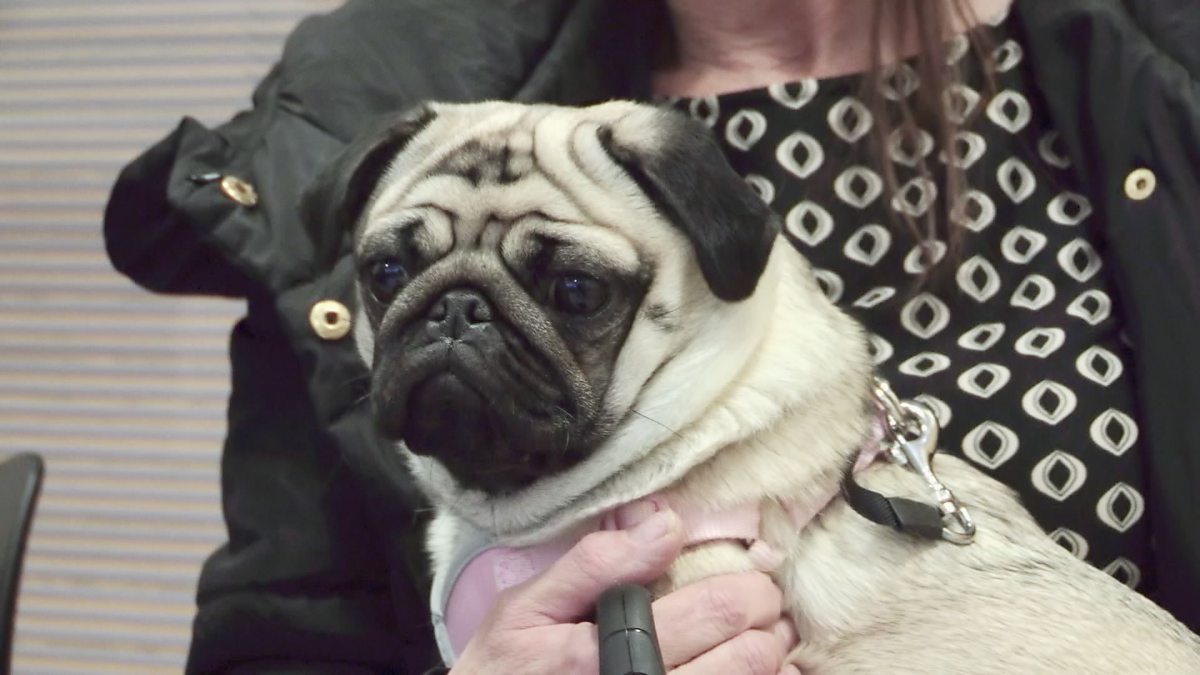 Bella the pug is having difficulty breathing.